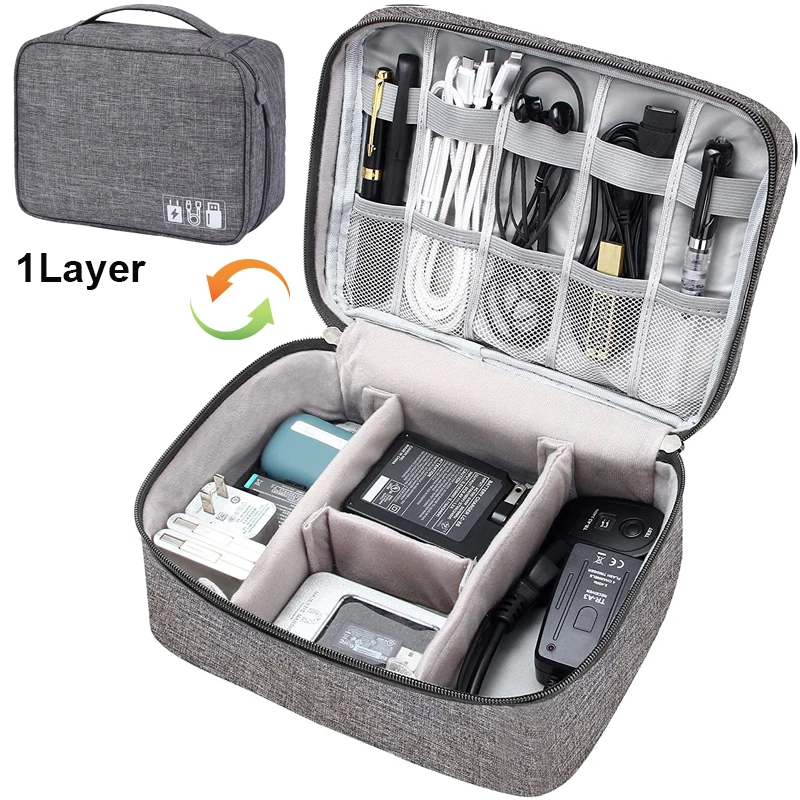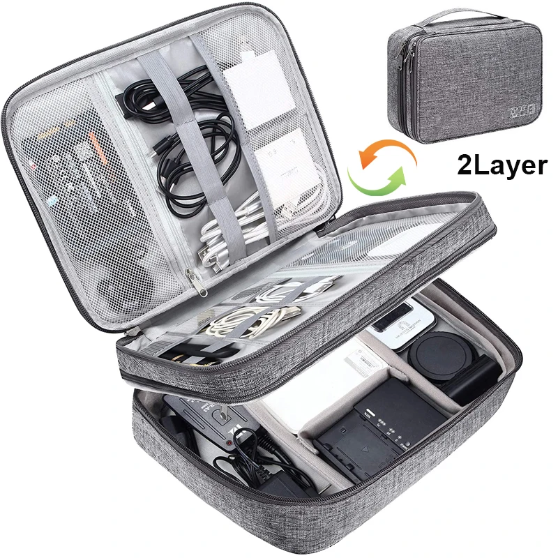 Get ready to jet off to your next vacation with this easy and convenient Cable and Digital Electronic Storage Case. Available in one layer or two, if you need even more space, this storage case has ample space for cables, chargers, chords, electronics, and more. Keep your luggage free from clutter and be able to find what you need at a moments notice. No more digging through your carry on luggage to find a charger while you're waiting to board a flight, with this easy organizer, you'll have exactly what you need, right where it should be.